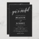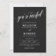 Dois informais em um convite de casamento com você são convidados escritos em uma bela caligrafia através do convite de casamento negro matte. Adicione seus detalhes de casamento às costas. Convite para casamento preto e branco mate informal com uma combinação de caligrafia suave e fontes elegantes.