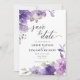 Casamento floral de aquarela salve o cartão de data. Flórida elegante, guarde a data do cartão postal com lindas flores pintadas manualmente e verde-aquarela em roxo, maduro, violeta e lilás com um roteiro elegante de caligrafia. Um casamento floral moderno salve o cartão de data. Você pode personalizar o texto, o estilo da fonte, a cor e o tamanho em frente e atrás do cartão. Por favor, sinta-se à vontade para contactar-me para obter os itens correspondentes.