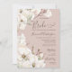 O convite para o chá de chá de noiva apresenta flores de magnólia em fundo taupe/mauve. O estilo elegante de um chá ou texto de noiva pode ser alterado para "chá". Informações adicionais, como o site de casamento no verso ou deixar o vazio da caixa de texto.