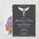 A lovely and unique interpretation of the classic caduceus symbol featuring a clean white caduceus with an elegant gray, anthracite background. All text can be easily customized to suit your celebration. The back is designed to showcase your photo, but it can also be removed if you prefer a clean, blank page. This eye-catching and professional design is perfect for announcing your medical graduation and inviting friends and family to celebrate this special milestone.