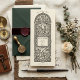 Step back in time and capture the magic of your love story with this gothic romance Save the Date. The detailed black and white illustration showcases a brave knight and his elegant bride, set against a backdrop of a medieval castle and rolling hills. This design is ideal for couples seeking a dramatic and sophisticated announcement, particularly for a wedding with a historical or fantasy theme. Let this elegant card set the tone for your unforgettable day.