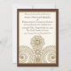 Design elegante de Leslie Sigal Javorek, inspirado por Mehndi (Henna Tattoos) criado pelas incríveis artistas hindus na Índia e no Paquistão, apresentando delicada renda dourada e tom-a-tom em um fundo de marfim quente com uma moldura marrom-sela. Texto personalizável.