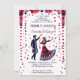 Mehndi e Sangeet Indiano casamento moderno dançando a aquarela índia casal de noiva indiana com glândulas de flores e pétalas de flores caindo acima deles maron e modelo azul marinho convite instantâneo.