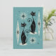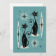 Para o entusiastas retrógrado e amoroso gato, a minha ilustração vetorial original de gatos pretos, starbursts e diamantes em estilo atômico de meio século, em preto e cinza, num fundo azul de cadete, com grão de tecido simulado.