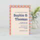 Entra numa cápsula do tempo da nostalgia chic com o nosso convite para o casamento da Mod Elegance. Projetado para transportá-lo para a glamourosa década de 1960, este convite é uma mistura harmoniosa de sofisticação vintage e estilo contemporâneo. A frente do convite apresenta um padrão clássico, abraçando cores ousadas e contrastantes que definem o palco de uma celebração diferente de qualquer outra. Adicione seus próprios detalhes clicando na opção "personalizar". Na parte traseira da placa, você pode adicionar sua própria imagem de código QR ou gerar uma usando as ferramentas de personalização do Zazzle ou excluir e substituir o texto.