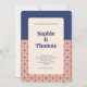 Entra numa cápsula do tempo da nostalgia chic com o nosso convite para casamento Retro de Meio século. Projetado para transportá-lo para a glamourosa década de 1960, este convite é uma mistura harmoniosa de sofisticação vintage e estilo contemporâneo. A frente do convite apresenta um padrão clássico, abraçando cores ousadas e contrastantes que definem o palco de uma celebração diferente de qualquer outra. Adicione seus próprios detalhes clicando na opção "personalizar". Na parte traseira da placa, você pode adicionar seu próprio código QR ou excluir e substituir o texto.