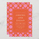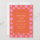 Surpreenda seus amigos e família com esses meios séculos vermelhos e cor-de-rosa modernos em um único convite para casamento! Adicione facilmente seus próprios detalhes clicando na opção "personalizar".