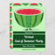 Um convite para uma festa virtual do fim de verão com um tema de ilustração de melancia sorridente.