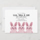 Tema bonito do coelho para um convite de aniversário de Melhores Amigos ou Tripletas com três coelhos de bebês cor-de-rosa. Voltar com padrão marcado. Verifique a coleção correspondente para COORDENAR ITENS. Angelilli trabalhos de arte exclusivos da PUPSIKU STUDIO. 100% de produtos exclusivos.