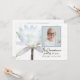 Convide os convidados a lembrarem-se do seu amado, um ano depois da sua morte com o convite pacífico do aniversário da morte da Lily Flor White Water. Esta celebração bonito e personalizada da floricultura do tributo memorial de vida convidada apresenta uma fotografia floral colorida digital de uma flor branca de lírio de água com realces azuis claros sobre um fundo branco. Personalize-o com o nome, as datas de nascimento e morte, a fotografia do falecido e os detalhes do seu evento. Disponível como convite impresso para envio e/ou como download digital para fácil compartilhamento digital online.