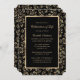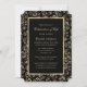 Celebração floral elegante de preto e ouro de um convite à vida com uma estrutura botânica de ouro.