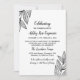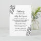 Convite de almoço para o Memorial com os contornos das folhas em preto e branco, com textura de pássaro impresso do outro lado. Adicione o nome e os anos de vida do seu ente querido, e o texto do convite fontes pretas, uma caligrafia moderna e uma só.