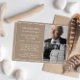 Um simples e limpo convite ao funeral em bege com detalhes brancos e fontes clássicas, e o espaço para adicionar duas fotos do seu ente querido.