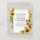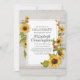 Composto por uma escrita cursiva e pela tipografia serifônica, tudo contra um pano de fundo de madeira na parte de trás do cartão e flores girassol felizes. Disponível aqui: http://www.zazzle.com/store/whiteoakmemorials