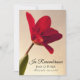 Convide os convidados a lembrarem o seu amado um ano depois da sua morte com o elegante Convite Memorial do Aniversário da Morte da Primavera da Flor Vermelha. Esta comemoração popular da floricultura do memorial do tributo de vida apresenta uma bonito fotografia floral pintada digitalmente de uma flor de tulipa vermelha no caule com um fundo bege. Personalize-o com o nome do falecido e as datas de nascimento e morte. Disponível como convite impresso para envio e/ou como download digital para fácil compartilhamento digital online. Inpo perfeito ou ideia para um evento de março, abril ou maio na primavera.