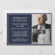 Um simples e limpo convite para o funeral em azul marinho com detalhes brancos e fontes clássicas, e o espaço para adicionar duas fotos do seu amado.