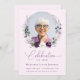 Esta é uma carta de convite ao funeral elegante e moderna para celebrar a vida do seu amado. A design apresenta uma bela fonte caligráfica e delicada coroa floral com botânicos rosa, roxo, brancos, verdes e prateados que armam uma foto. Este convite pode ser facilmente personalizado com sua própria foto e texto para criar um tributo especial para o funeral, memorial ou celebração da vida de seu ente querido usando o modelo fornecido. Entre em contato com o designer para obter informações sobre este design ou sobre produtos correspondentes.