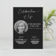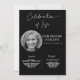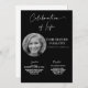 Este convite apresenta um estilo minimalista simples e moderno com belas caligrafias e fontes sans serif e serif em um fundo preto. Você pode personalizar com uma foto do seu ente querido e informações sobre o funeral/memorial. Você pode personalizar o convite para qualquer maneira que você gostaria de lembrar e honrar a memória de seu ente querido. Basta notar que os termos "Celebração da Vida", "serviço" e "recepção" não podem ser editados. Você pode mudar a cor ou removê-la do anúncio do convite para o funeral do memorial, se quiser. Basta clicar em personalizar o convite.