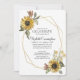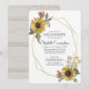Composto por uma escrita cursiva e uma tipografia serif; Tudo contra um pano de fundo de madeira na parte de trás do cartão e flores girassóis felizes.