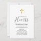 Convites do Serviço Memorial | Cruz de ouro cristão. Honre a vida de seu amado com este serviço de memorial elegante e convite para o almoço.