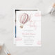 Este convite de chá de bebê encantador apresenta um lindo balão de ar quente rosa e nuvens, juntamente com uma tipografia elegante. Com o código QR do seu registro e foto especial no verso. Criado por Thisisnotme©