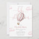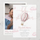 Este convite de chá de bebê encantador apresenta um lindo balão de ar quente rosa e nuvens, juntamente com uma tipografia elegante. Com o código QR do seu registro e foto especial no verso. Criado por Thisisnotme©