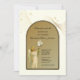 Apresentando um convite elegante de batismo de ouro com um belo anjo vintage segurando uma lírio branco. Todo texto e fontes podem ser modificados.