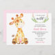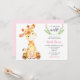 Girafa de cor-de-água pastel em rosa, cinza e verde para convite para chás de fraldas de meninas.