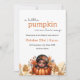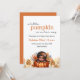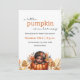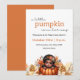 Este convite personalizável para o chá de fraldas do outono apresenta trabalho de arte de cor d'água de um adorável bebê de pele castanha em uma abóbora, cercado por decoração do outono. Esquema de cor quente e neutro com muitas laranjas e castanhos. O texto é personalizável - adicione o seu nome e detalhes de localização, etc.! Excelente para o Halloween e época de colheita.