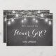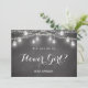 Convite de menina com flores preto com jarro de mason, luzes de corda e fundo rústico de quadro negro/quadro de giz. Convite de dama de honra/ menina com flores/ festa de casamento. Confira nossa coleção de produtos abaixo para mais produtos com este design, use a opção personalizar este modelo para alterar o texto.