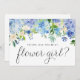 Convide sua menina de flores com este cartão de proposta doce e elegante com hidrangeás azuis em aquarela, rosas bege e folhagens suaves em um desenho de guirlanda floral. A paleta de cores suaves torna-o perfeito para casamentos de primavera ou verão, cerimônias de jardim ou temas de noiva clássicos. Você pode personalizar o nome e a mensagem para criar um presente que ela vai lembrar. Os detalhes florais delicados adicionam exatamente a quantidade certa de charme a este momento especial. Seja para sua sobrinha, irmã ou amiga da família, este cartão torna o pedido "Você será minha menina de flores?" ainda mais atencioso.