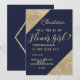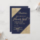 Elegantes, chiques e glamorosos cantos com lantejoulas douradas e grafismo em ouro em um fundo azul-marinho, "Você quer ser minha Dama de Flor?" Convites para Dama de Flor. Este design clássico e sofisticado é perfeito para a noiva moderna e elegante que deseja fazer com que sua Dama de Honra se sinta especial e amada. Personalize com sua própria mensagem na frente, bem como um monograma inicial personalizado no verso. Todos os designs são impressos com foto.