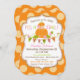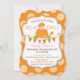 Fundo de impressão de poka-dot laranja com faixa de rodagem e design de convite para o chá de fraldas de outono da menina de abóbora.