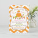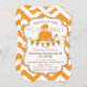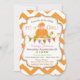 Fundo impressão de de chevron laranja e branco com barra de faixas e cartão de convite para o chá de fraldas de outono da menina de abóbora design.