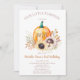 Celebre seu primeiro aniversário em estilo com estes Pequenos Convites de primeiro aniversario de Abóbora! Personalize com suas informações de evento para criar um cartão gentil que seus amigos e familiares certamente amarão. Projetado com abóbora aquosa, folhas de brilho falso e fontes modernas.