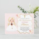 Celebre o dia especial dela com este convite floral rosa elegante e romântico para a Primeira Comunhão. Criado com tons de rosa suave e flores delicadas, este convite lindo e sofisticado para uma celebração católica é perfeito para homenagear o evento sagrado de sua filha.