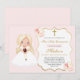 Convites Menina de Cabelo Loiro Primeira Comunhão Rosa Suav