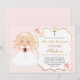 Celebre seu dia especial com este convite floral rosa elegante e romântico para a Primeira Comunhão. Criado com tons de rosa suave e flores delicadas, este convite lindo e sofisticado para uma celebração católica é perfeito para homenagear o evento sagrado de sua filha.