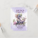 Nuvens roxas na parte superior e inferior deste convite com texto alternado entre