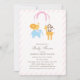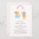 Este convite do chá de fraldas caracteriza um móbil animal do safari em um muito claro - fundo listrado cor-de-rosa. Design do ©Blackleaf dos gráficos.