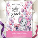 Convites Menina Elefante Rosa Balões Rosa Chá de fraldas Do
