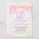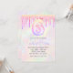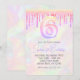 Convites Menina holográfica rosa com brilho e gotas de 6 an