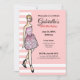 Desenhado com base na minha ilustração de uma linda senhora loira de cabelo usando um deslumbrante vestido de cocktail clássico e elegante de rosas cor-de-rosa, calçando sapatos pretos de salto alto. O design tem um padrão de listras rosa e branco - um estilo moderno e chique. Personalizável com o seu próprio texto para um design personalizado.