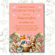 Celebre o dia especial do seu pequeno com este adorável convite de aniversário personalizado de Animais da Floresta para o 1º aniversário! Com um urso, raposa, esquilo e coelho fofos se divertindo em uma festa na floresta, este design captura toda a magia de uma reunião na floresta. Os animais encantadores estão reunidos em torno de uma mesa de toco de árvore cheia de deliciosos bolos e bebidas, cercados por árvores verdes. Contra um fundo rosa suave, esses convites adicionarão o toque perfeito para a celebração do primeiro aniversário da sua pequena. O design divertido e a caligrafia com fonte de letra divertida tornam este convite funcional e deliciosamente elegante para a celebração do primeiro aniversário com tema florestal.