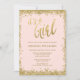Convites Menina Rosa Brilhante Falso Dourado Chá de fraldas