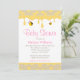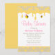 Um convite para chá de fraldas de abelhinhas. Apresentando cola de mel amarela e mamangabas rosa.
