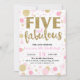 Convites Menina rosa e Dourada cinco e fabuloso 5