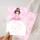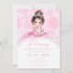 Comemore o momento alegre do aniversário real da sua garotinha com um convite encantador. Este design encantador apresenta princesa fofa em vestido cor-de-rosa para bebês e flores cor-de-rosa nas costas. Ponha o tom para uma comemoração mágica e crie um humor encantador com este belo e delicioso convite de aniversariante.