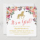 Convites Menina Unicórnio Brilho Dourado Rosa Chá de Bebê