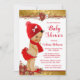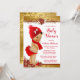 Convites Menina Vermelho Dourado Chuvada Bebê de Natal Étni